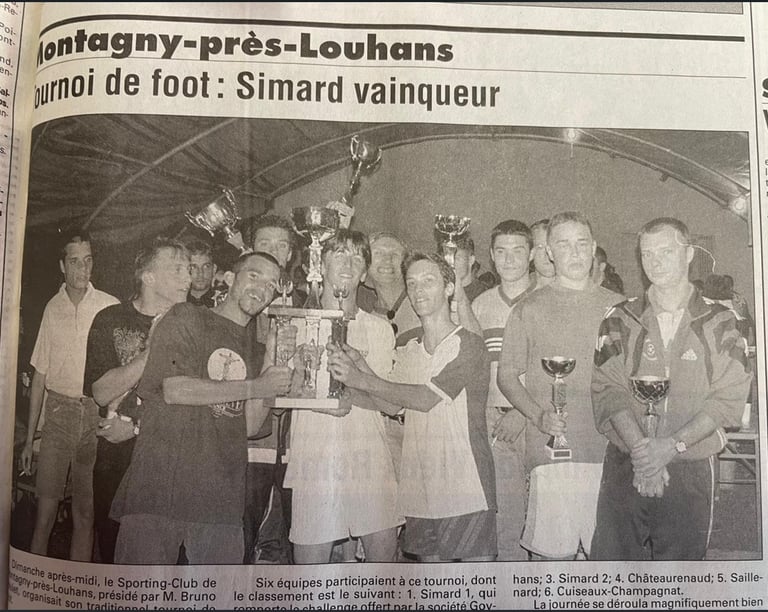 Winner with Senior Team A of a pre-season Tournament against 6 local Football clubs in August 1998 (Louhans) and 3rd place with Senior Team B (played with them and won the 3rd-place play-off): the journalist covering the event requested my coach for photographing me with the Winner Trophy to include the picture in his article in the main local newspaper (see picture below).